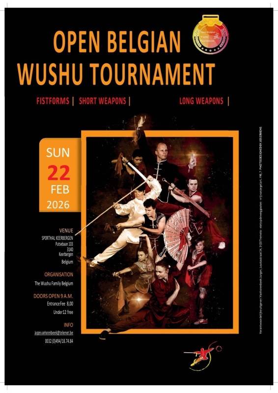 Op zondag 22 februari 2026 wordt in het Belgische Keerbergen het Open Belgian Wushu Tournament gehouden. Dit is een stijlwedstrijd voor beoefenaars van traditioneel Kung Fu, Wushu en Tai Chi.